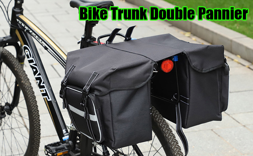 Bike Double Pannier Bags Waterproof Bicycle Rear Seat Panniers Pack with Reflective Stripe