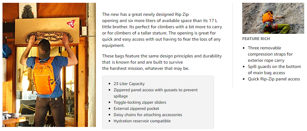 3.ACCESSORY FRIENDLY – This travel backpack is ready to haul all of your climbing needs; it has daisy chains for easy attachment of accessories, a removable tool attach with haul loops, and sports a hydration reservoir