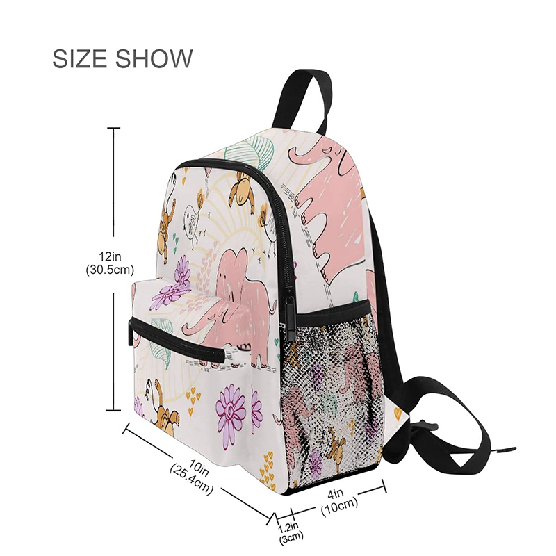 3. Spacious compartments: Cute backpack for storing children’s snacks and toys/items, one main bag for A4 books, 2 convenient and secure side pockets for easy storage of thermos cups straws water bottles and other small items.