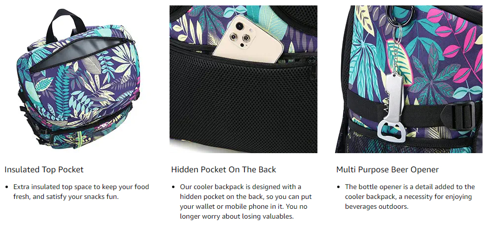 3.【Multiple Pockets】–Our ice pack has 1 spacious main compartment, 2 side mesh pockets for holding beer, 1 insulated top pocket for snacks, 2 for utensils Large front zip pocket, 1 anti-theft pocket for wallet, 1 cell phone mesh pocket on shoulder. Enough capacity to organize your daily or beach items. Additionally, we’ve included a keychain bottle opener for added convenience.