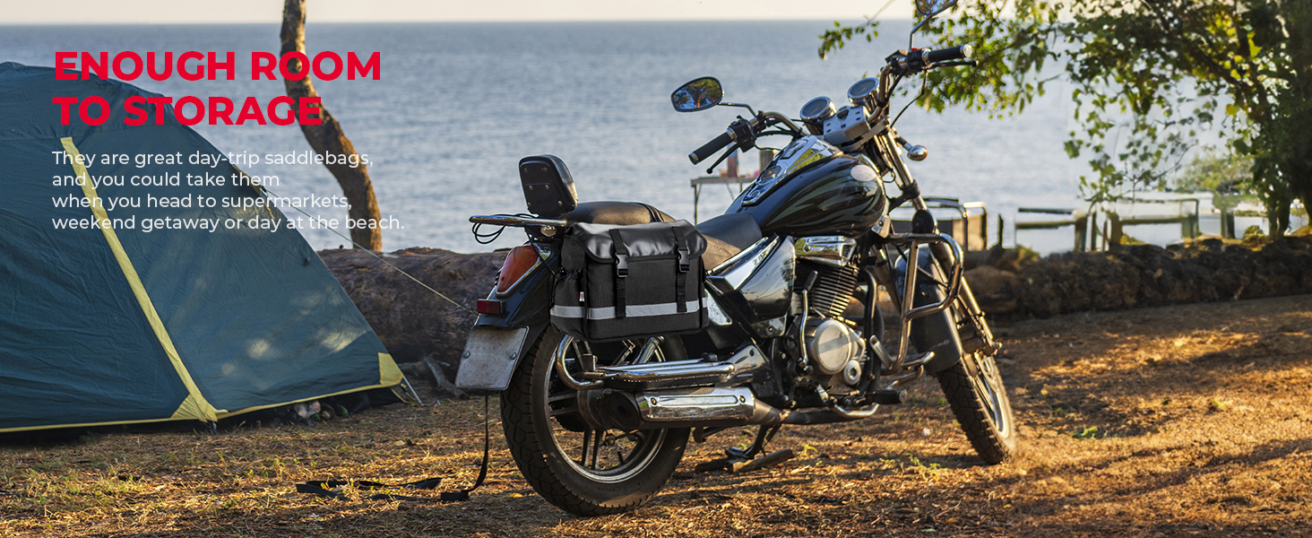 Motorcycle Saddle Bags, Middle-Sized Motorcycle Throw Over Saddlebags Scooter Panniers 30L Universal Compatible with Cruiser, Motorbike, Dirt Bike, Scooter