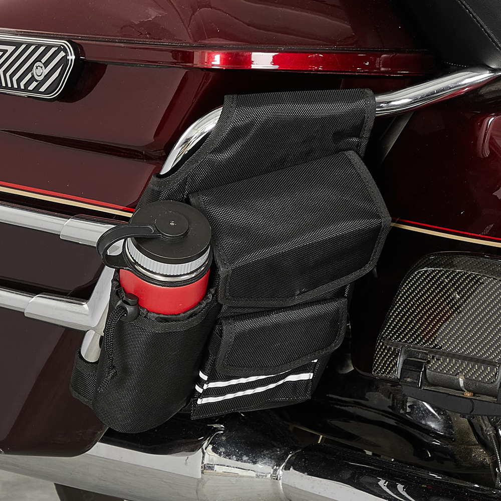 2. 【Easy to Install】You could install the lower chaps in less than 5 minutes. You could put them on your crash bar and fasten the straps to the V Bracket. If your motorcycle like street glide special has a screaming eagle heavy breather, these soft lower chaps must be your first priority choice than the hard lowers.