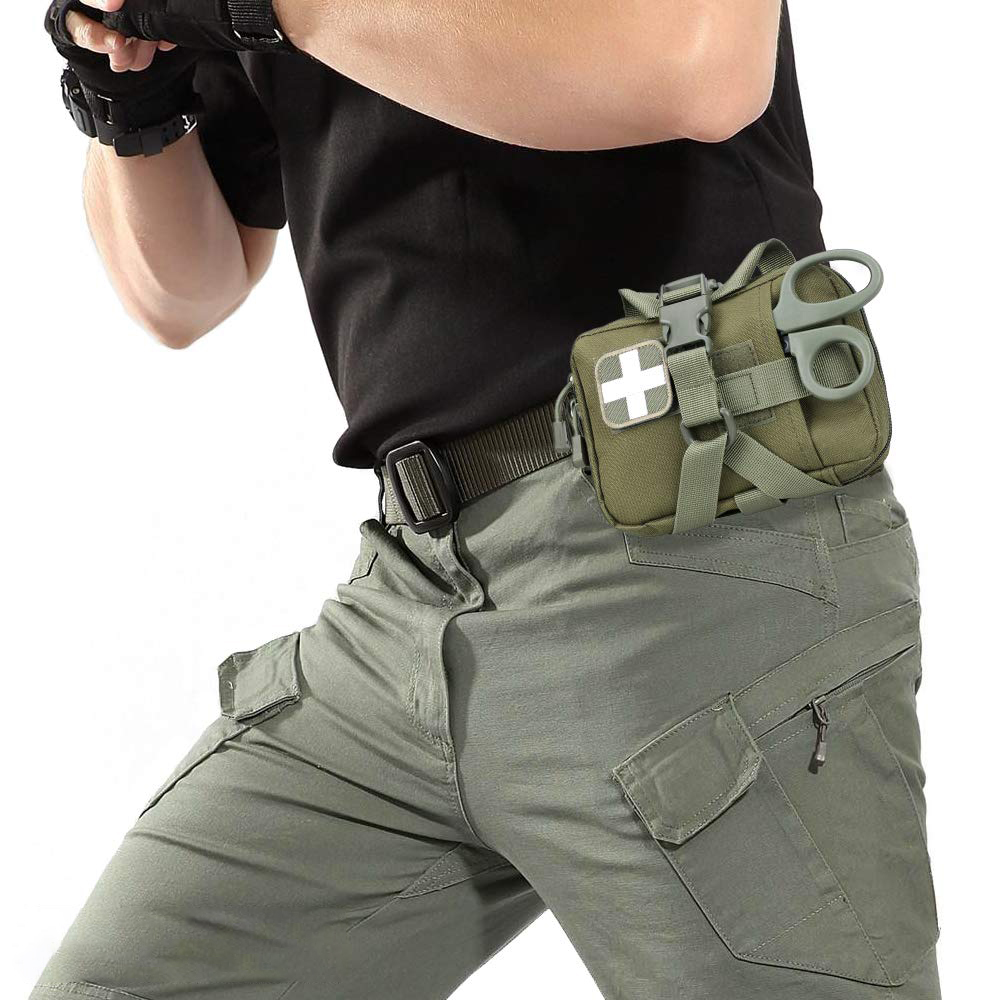 3. Material: The First Aid bag is designed to last for years, providing scratch and wear resistance to protect your tactical accessories. Made of high density 1000D polyester, double stitch, durable.
