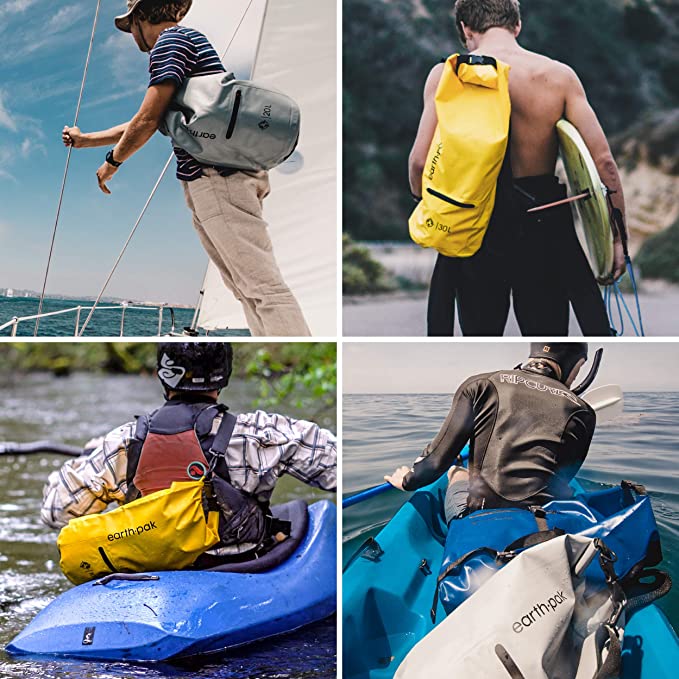 SIZING & STRAPS: Our waterproof bags come in 4 convenient sizes (10L, 20L, 30L, 40L). 10L & 20L dry bags come with a single shoulder strap that is adjustable and can extend up to 36 inches. 30L and 40L dry bags are equipped with backpack style shoulder straps that also come with a sternum strap for added stability.