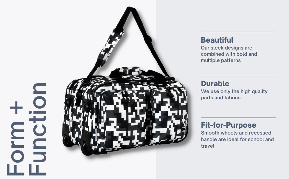 5.[Designed for Travel] Not only is very easy to carry but this travel bag with wheels is specially engineered to fit effortlessly under the airplane seat or overhead compartment. Also, thanks to its cool aesthetics and versatile design, the duffel bag can be used for school, college, travel, vacation and it’s suitable for adults and children alike.